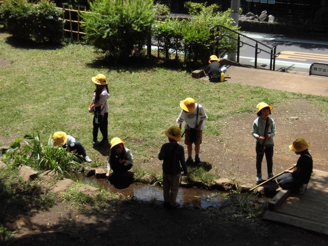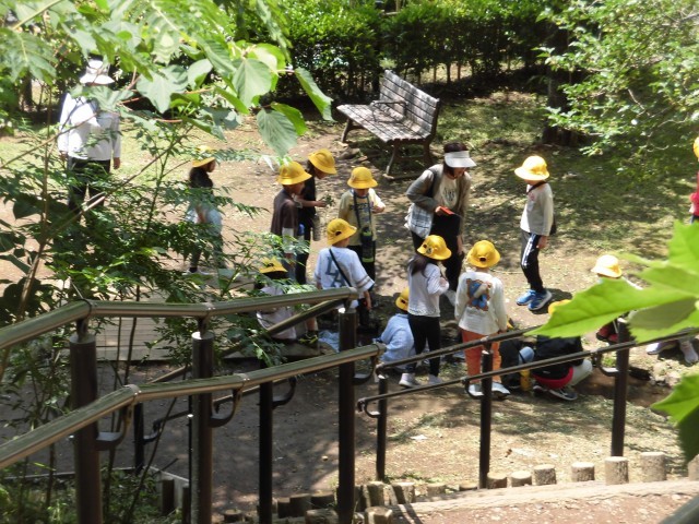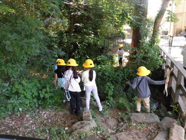 1年生が里山に出かけました。初めての里山で、たくさんの生き物をみつけたり、思いっきり楽しむことができました。学校のすぐそばで、四季折々の自然を楽しむことができる里山では、今日も新しい発見がいくつもあったようです。「また行きたい!」「すごく楽しかった!」という声がたくさん聞こえてきました。教室に戻ってからは、今日見つけた生き物を発表しました。先生から川でさわがにが捕れたり、秋にはたくさんのどんぐりを拾うことができることも教えてもらい、「早く行きたいなぁ」とますます楽しみになったようです。