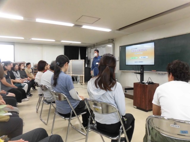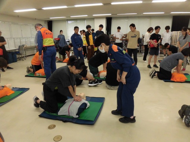 今日は、放課後に成城消防署で教員全員が応急手当の講習を受けました。毎年消防署の方の協力を得ておこなっています。初めは、DVDを見ながら救命処置の手順を復習しました。続いて4人ずつの班に分かれて、実習を行いました。救命を行う人、AEDを持ってくる人、119番に連絡する人、救急車を誘導する人の役を決めて順番に実践しました。指導員の方のアドバイスを聞いてそれぞれの動き方で大切なことを学びました。実際にやってみることでできるだけ多くの人の協力が必要なこと、真っ先に救急車を呼ぶことなど命を救うために優先すべきことを改めて確認することができました。今日の講習をしっかり身につけ、万全の態勢で水泳指導に臨みたいと思います。