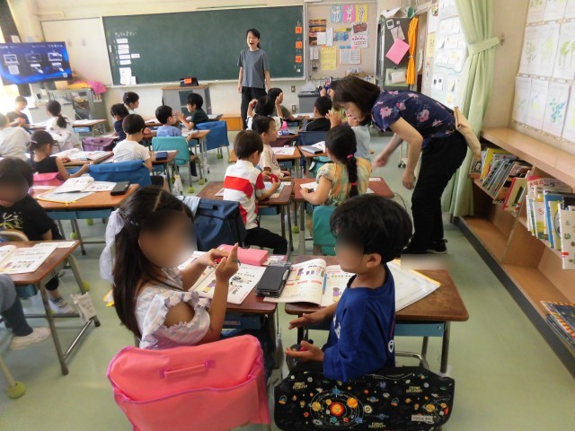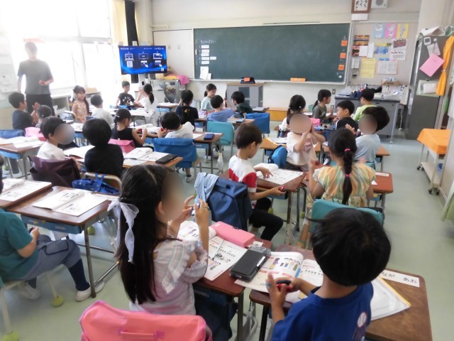 1年生の音楽では「拍をかんじとろう」の学習をしています。「たん・たん・たん・たん」や「たん・たん・たん」のリズムで、拍の流れを感じ取りながら、体を動かしたり、カスタネットでリズム打ちをしました。ペアになって、リズム打ちができているか確認しあい、一緒に楽しみながら学習することができました。