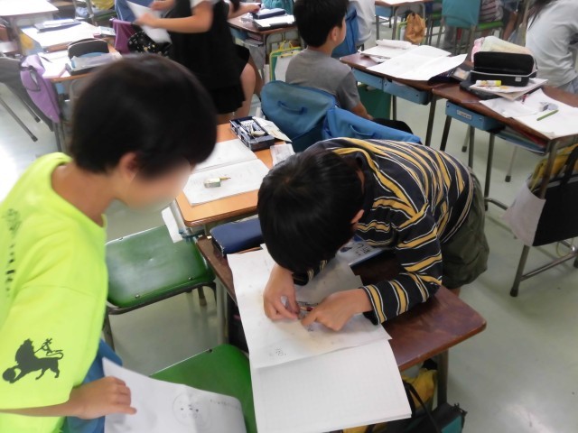 4年生の算数では角の大きさについて学習しています。分度器を使って、角度を測る練習をしました。角の単位「度(°)」を理解して、分度器を用いて角の大きさをはかかりました。分度器の中心と角の頂点を合わせて、分度器の辺と角の辺を合わせてはかりました。ぴったり合わせるのが少し難しいですが、目盛りの読み方も覚えて、次々と角の大きさをはかりました。分度器を使って、角をかいたり、三角形を書くことにも挑戦します。