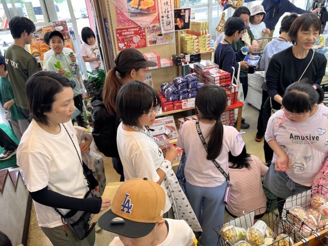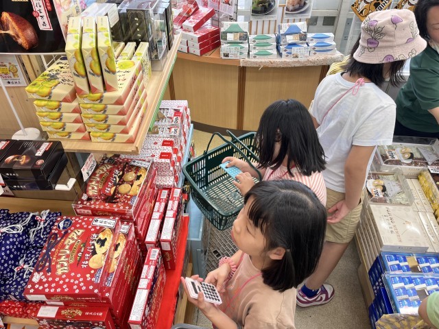 学園に戻る途中で、お土産を買いました。どの子も「真剣」な表情です。計算機で金額を確かめます。お小遣いを超えないように買い物ができました。どんなお土産でしょう?お楽しみにしてください。