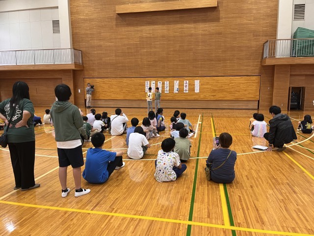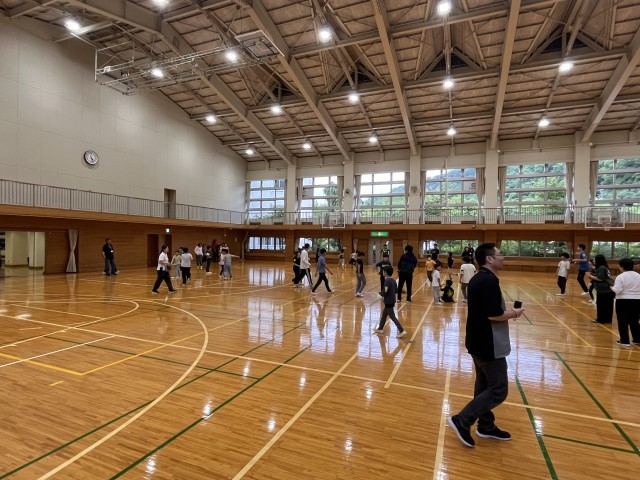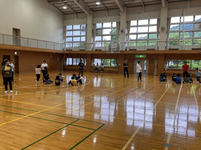 子ども会が始まりました。まず、みんなで歌を歌いました。ゲームは「よつかど」と「ハンカチ落とし」です。他の学校の友達とグループになって楽しそうです。