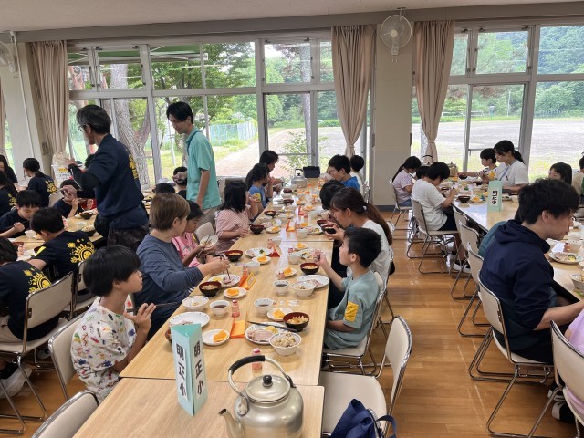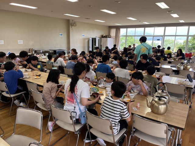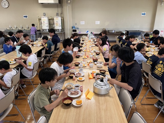 2日目の夕食は名物の「ほうとう」です。ハイキングや子ども会で体をたくさん動かしてお腹が空いたようです。昨日の夕食よりたくさん食べる子がたくさんいました。