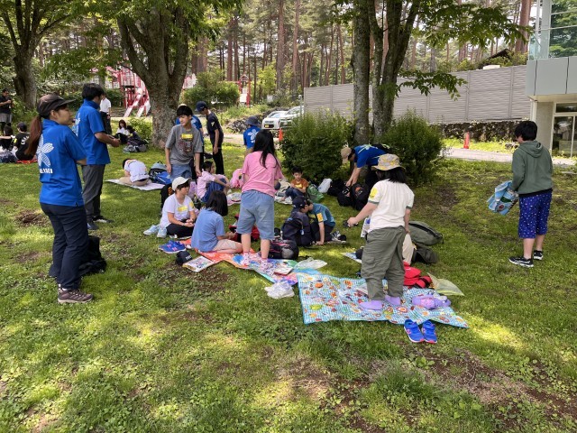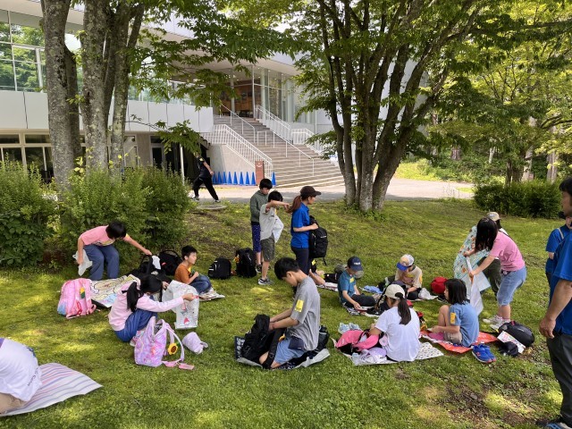 たくさん遊んだあとは、お弁当です。木陰で食べました。風が心地よく、とてもおいしかったそうです。13時に学校に向けて出発しました。