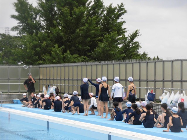 4年生のプール開きが行われました。着替えも移動もスムーズに行い、先生からの注意事項やプールでのきまりを再確認して、準備運動で体をほぐしました。バディによる人数確認も大きな声でできました。シャワーの冷たさには、「わー冷たすぎるー!!」という声がたくさん聞こえてきました。水をかけあったり、うかんだり、水慣れもばっちりでした。少し肌寒くも感じましたが、リズミカルな音楽に合わせて体を動かし楽しむことができました。