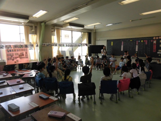 1年生のクラスで学級会が開かれました。「みんなが楽しめる遊びを考えよう」という議題で、議長や司会者の役割もきちんと決めて話し合いました。まず、みんなが楽しめる遊びを出し合いました。「こおりおに」「なんでもバスケット」「だるまさんがころんだ」などたくさんの遊びが出てきました。どの遊びがよいか、自分が選んだ遊びを、その理由も手を挙げてきちんと発言することができました。よりよいクラスにしようと、みんなが真剣に話し合い、考えている様子がみられました。