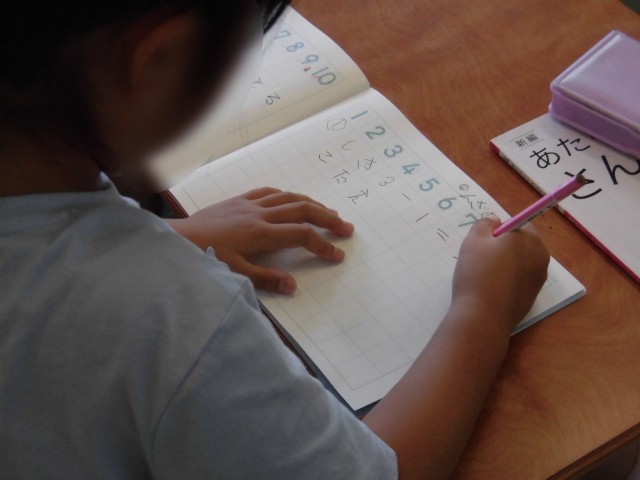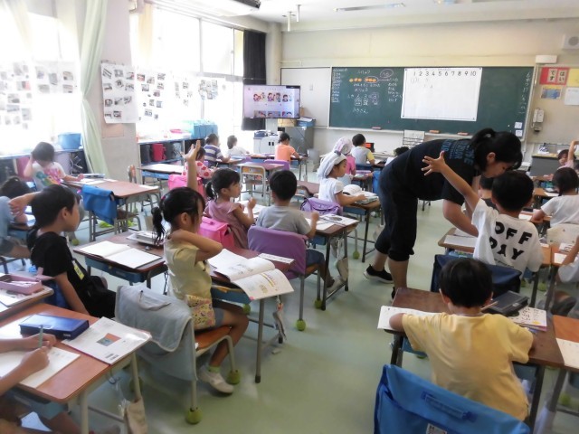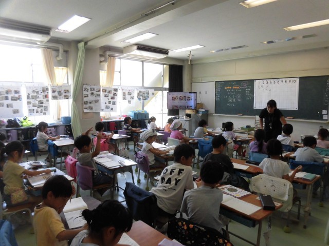 1年生の算数では、ひき算の学習をしています。今日は「3本のお花の1本をお友だちにあげたら何本残りますか?」といった文章題の問題を式に表して答えを求めました。今まで学習してきたことがしっかりと身についていて、ノートに式と答えをすらすら書いて先生にマルをもらいました。ひき算の文章題を何問も解いて、習熟をはかることができました。