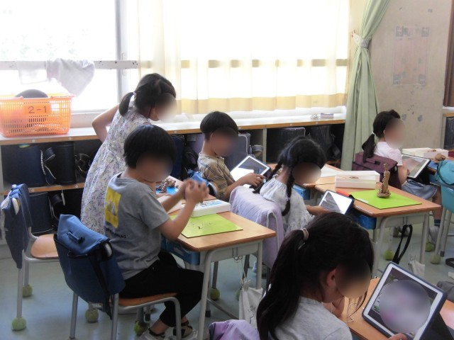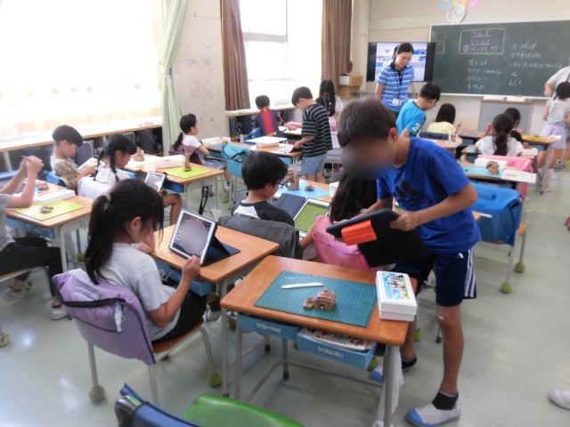 2年生の図工では、「つんでならべてびっくりしタワー」の作品を作りました。自分の考えたものや想像したものを、粘土で表します。小さく丸めた粘土や大きく丸めた粘土、棒状にした粘土など、様々な形にした粘土をならべたり、積み上げたりしてタワーをつくりました。どんどん積み上げて形を変えながら制作活動を楽しみました。これなんだと思う?と友だちを話したり、想像の世界が広がり、とても楽しい活動となりました。