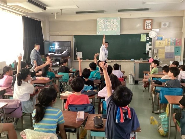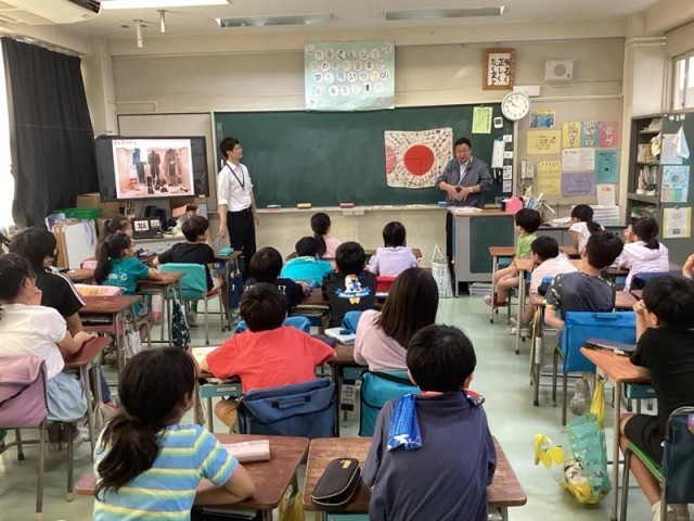 4年生で、せたがや未来の平和館より、講師の先生をお招きし、平和学習を行いました。戦争のこと、戦時の暮らしのこと、平和とは…子どもたちがイメージをもてるように、絵本や実物を用いて授業が進みました。世田谷区でも空襲があったと聞き、子どもたちはとても驚いていました。戦争に行くときにお守りとして持って行った仲間の名前が書かれた日章旗、明るさを抑えるための黒く塗られた電球、焼夷弾など、本物が出てくると、子どもたちは興味津々でした。本日は学校公開で、多くの保護者の方々にも参観していただきました。保護者の方からも「私たちも知らないことばかりですね」「今度子どもとせたがや未来の平和館に行ってみたい」などと感想をいただきました。この学習により、平和への思いをもって、国語「一つの花」を学習していけると期待しています。