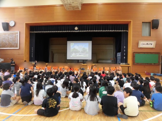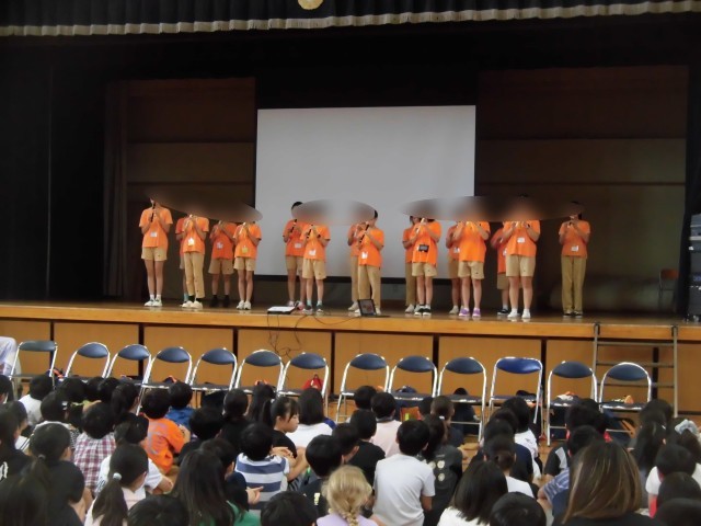 今日は台湾の新生国小学校の16名の皆さんが明正小にいらっしゃいました。まずは体育館で歓迎式を行いました。新生国小学校の皆さんから、学校の概要や一日のスケジュールや給食、運動会や作品展についてなど学校紹介がありました。また、歌とリコーダーの演奏があり、素敵な音色が体育館に響き渡りました。明正小の4年生からは、校歌の合唱を披露しました。大きな声で、心を込めて歌うことができました。クラスに分かれて、授業体験や交流会を行います。