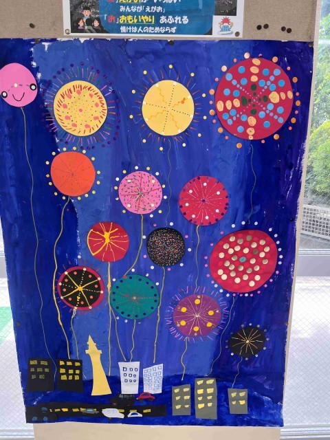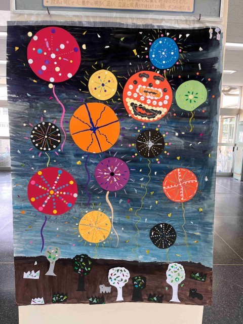 朝から日の光がジリジリと照り付けていましたが、子どもたちは元気に登校してくれました。近頃、子どもたちから挨拶をしてくれることが増えたと感じます。とてもうれしいことです。昇降口には、装飾アート委員会のみんなが作ってくれた「花火」が飾られました。いよいよ夏だと感じられます。