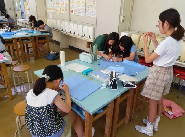 6年生は家庭科でナップサックを作っています。目的に合わせて布を選ぶことや縫い方を工夫することの大切さを学習し、実際に作り始めました。どの子も真剣に取り組んでいますできあがって、何をいれるのか楽しみですね。