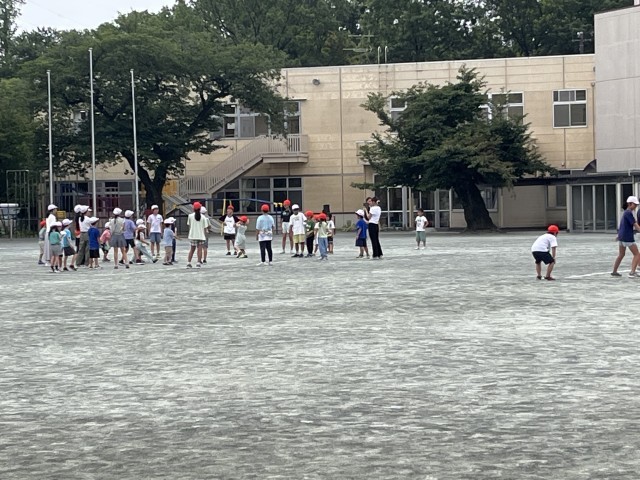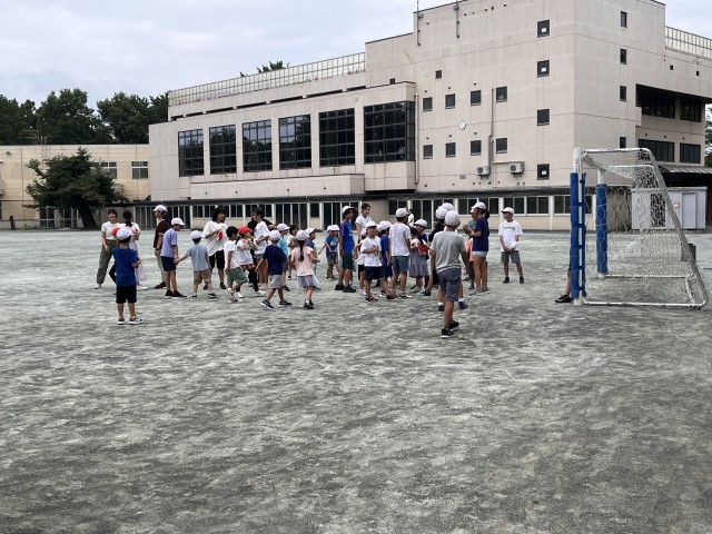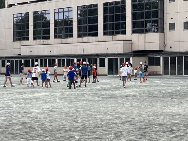 1年生と6年生が交流しています。ただ一緒に遊ぶだけではなく、6年生の学級での話し合いで、1年生と関わる機会が増えているから、もっと仲良くなれるようにしようという目的があったそうです。このような機会を通して、上級生への憧れや尊敬の気持ちが育っていくと思います。