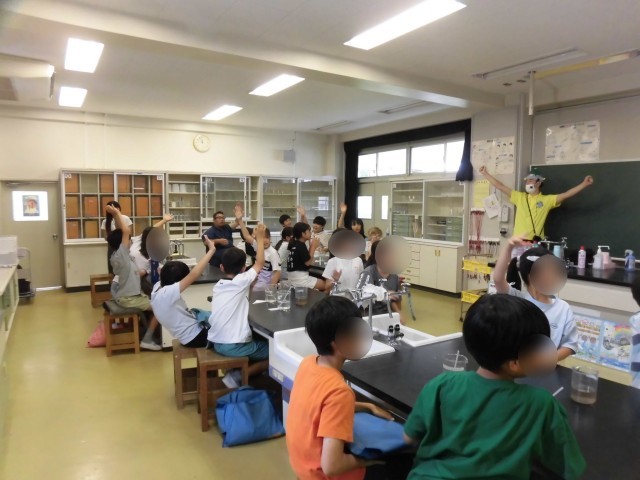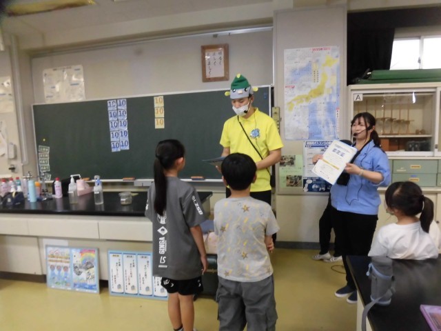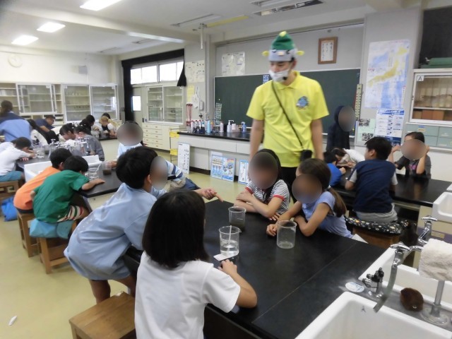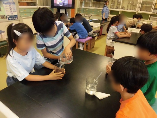 今日は4年生が、東京都下水道局の方々を講師にお迎えして、出前授業を行いました。下水道の役割や水循環について、動画やクイズ、実験などで学習しました。ビーカーを使って「沈殿実験」と「トイレットペーパー実験」をグループごとに行い、汚水がきれいになる過程やSDGsとの関係についても学ぶことができました。子どもたちは楽しみながら下水道の役割や、日常生活の中で自分たちが気を付けるべきことなどに学習できたようです。最後のクイズにも全問正解し、全員が「下水道マイスター」になることができました!