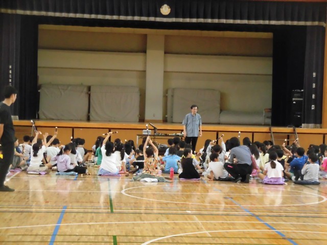 先日、3年生が、講師の先生をお迎えしてリコーダー講習会を行いました。リコーダーの持ち方やタンギング、演奏のしかたをご指導いただき、指を素早く動かすこと、たくさん練習することの大切さを学ぶことができました。普段使っているソプラノリコーダーの他にも大きなアルトリコーダーや小さなソプラノリコーダーまで、大小さまざまなリコーダーを紹介していただきました。たくさんの技もや演奏を披露していただき、「すごーい!」という声もたくさん聞こえてきました。体育館にはとても素敵なリコーダーの音色が響きわたり、子どもたちもリコーダーにより親しみがわいてきたようです。