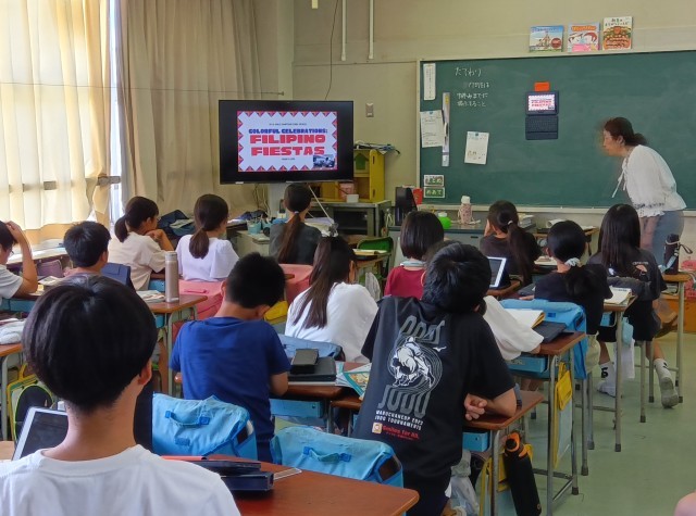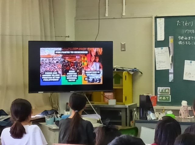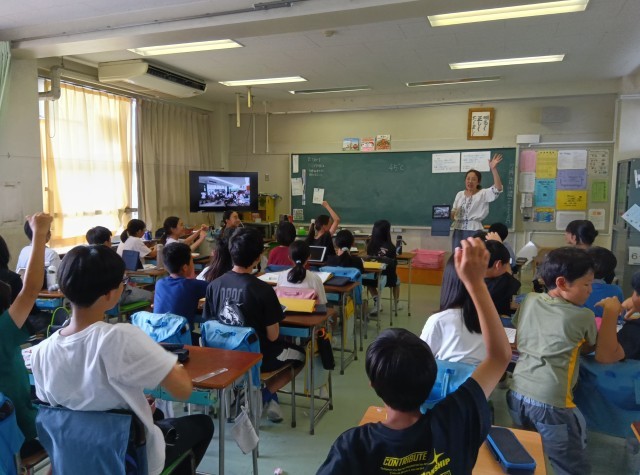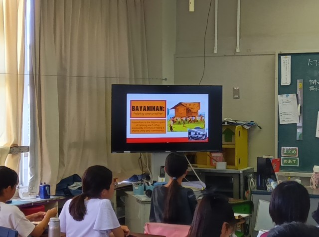 6年生がフィリピンの小学校とオンラインで交流しました。フィリピンの小学生からフィリピンのいろいろなお祭りや、周りの人を大切にするといった文化を教えてもらいました。明正小の6年生からは日本の食べ物や季節について伝えました。「夏は、何℃くらいになるのですか?」と質問すると「45℃」と教えてくれて、びっくりしました。短い時間でしたが、いろいろな人たちと関わることは楽しいですね。