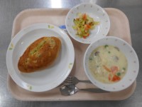 【献立】 牛乳 国産小麦のガーリックフ...
