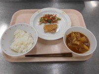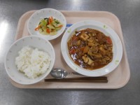 【献立】 牛乳 ごはん 家常豆腐 中華...