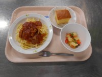 【献立】 牛乳 トマトといかのスパゲテ...