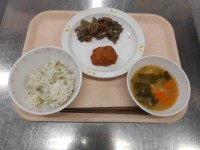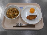 【献立】 牛乳 ビビンバチャーハン わかめスープ くだもの(柿)【主な食材と...