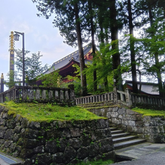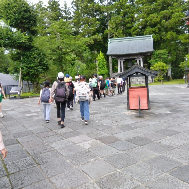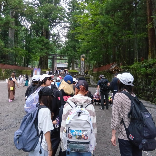 日光東照宮な見学をしています。ガイドさんに説明をしていただいます、