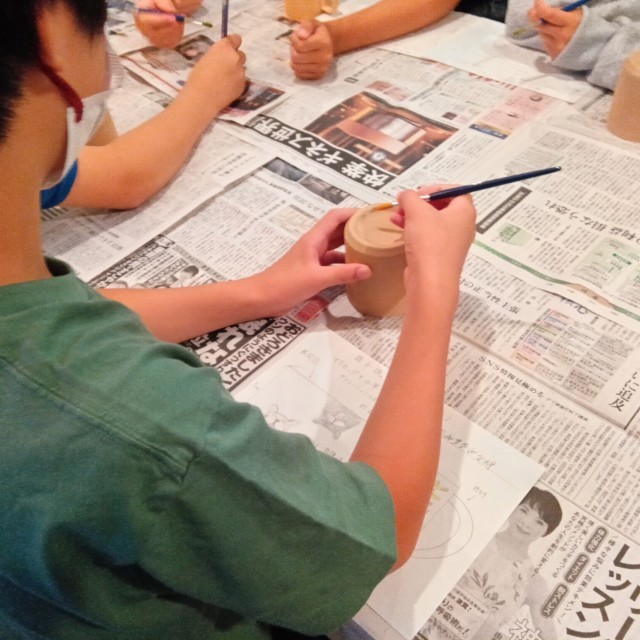 益子焼の体験を行っています。短時間のたいけんてす。集中して取り組んでいます。