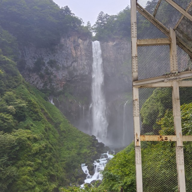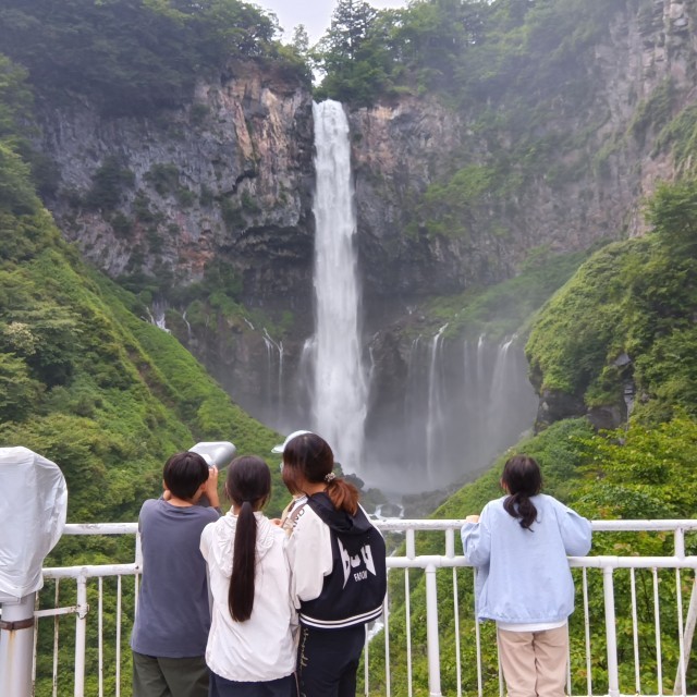 華厳の滝を見学しました。水量が多くて水しぶきが見学場所まで降り注いでいました。迫力がありました。