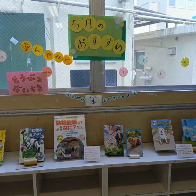 学校図書司書が、毎月のあすすめ図書コーナーを設置しています。