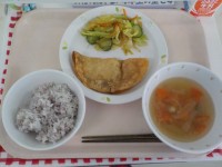 本日の給食は、有機米ごはん・鶏肉のから揚げネギソース・糸寒天サラダ・なめこの味噌汁・牛乳です。