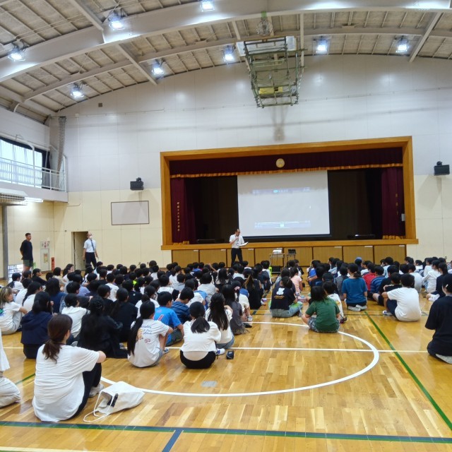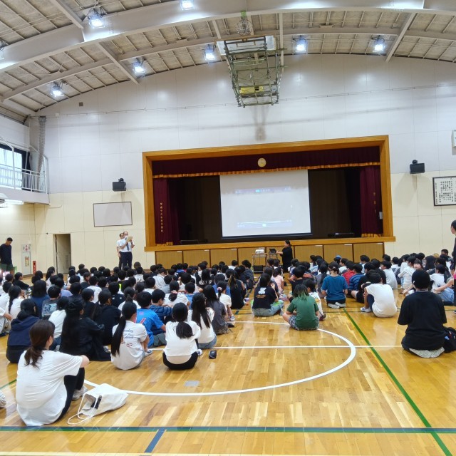 学び舎の4校の小学校な6年生が、一緒に中学校体験をしました。