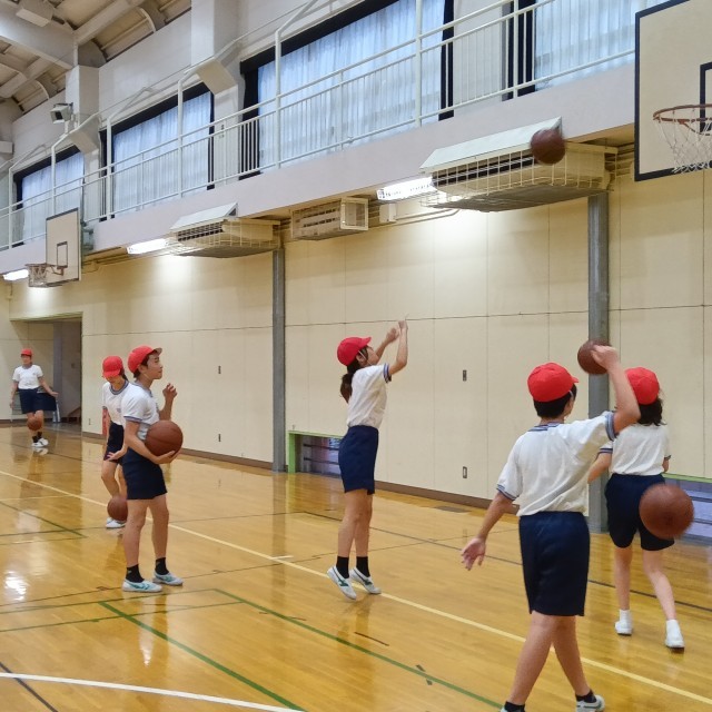 このグループは、体育の授業でバスケットボールを学習しました。