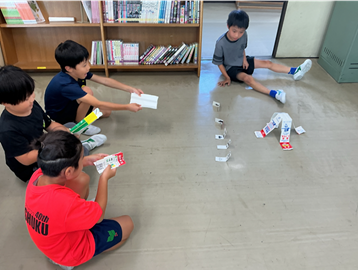 生活科「あそんで作ってくふうして」で身の回りにある材料を使っておもちゃ遊びをしています。