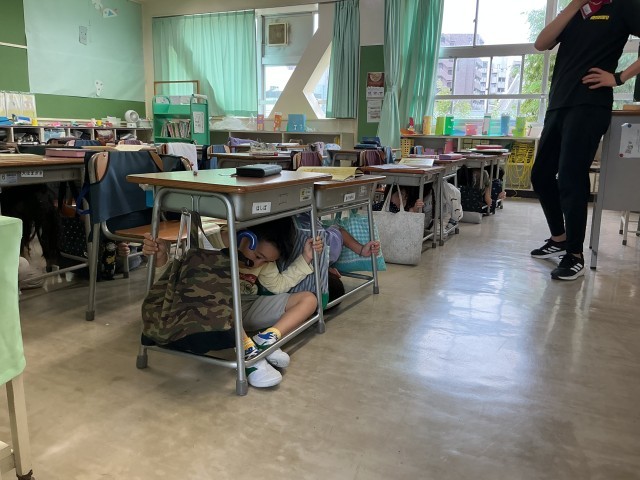 朝学習時間の地震を想定した訓練を行いました。緊張感を持ち、落ち着いて訓練ができました。