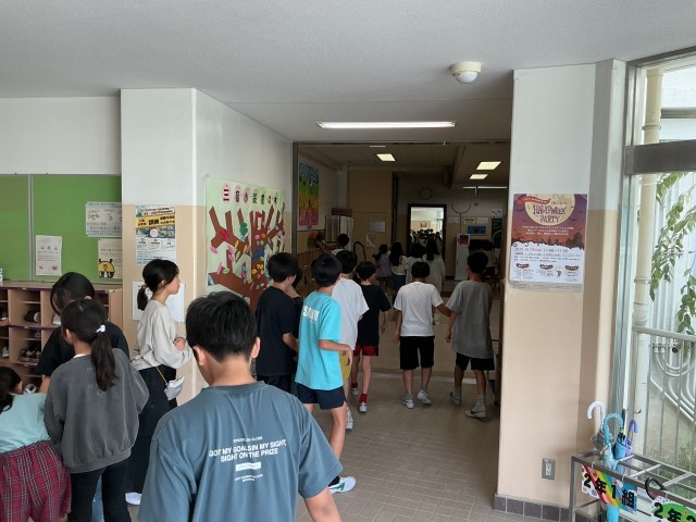 昼休みの終わり、教室に戻る様子。チャイムと同時に授業を始められるよう、自ら考えて行動しています。