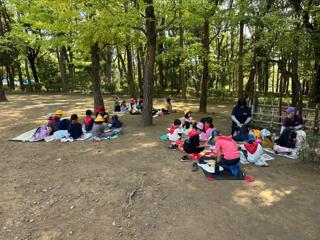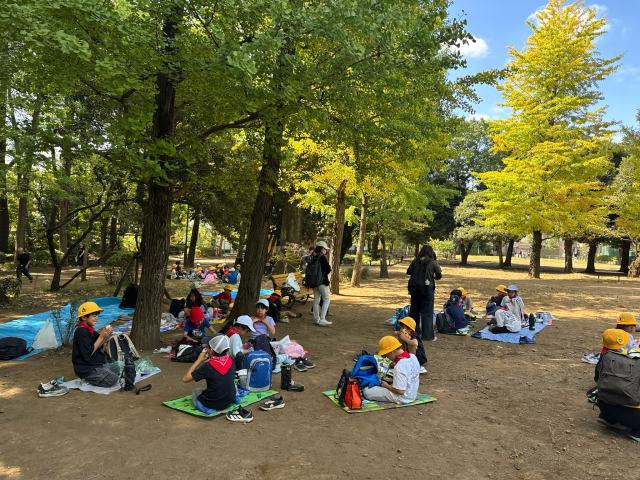 楽しい昼食タイム。ここからはにじいろ班に分かれて、低学年合同の活動になります。皆お弁当を美味しそうに頬張っています。