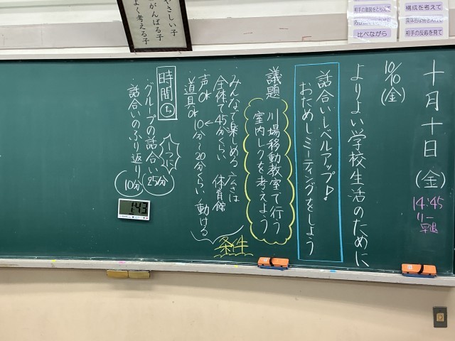 議題に沿った話合いの仕方を検討し、考えを広げることと話合いの中身をまとめることにポイントをおいて研究授業を行っています。