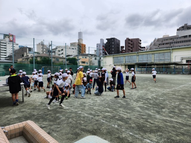 にじいろ班を活用して、1年生から6年生で全力鬼ごっこをしました。