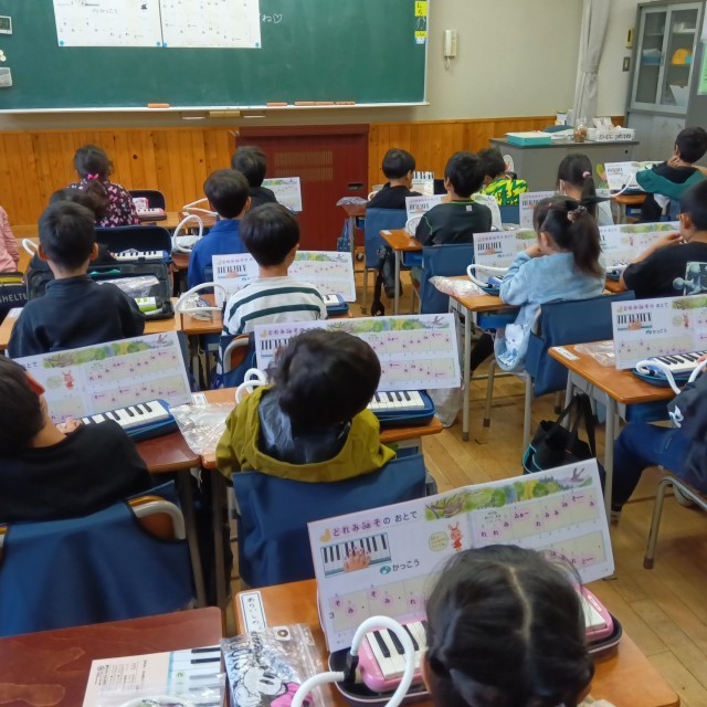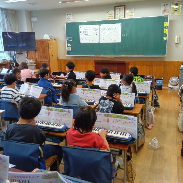 鍵盤ハーモニカの指使いに気をつけながら、練習をしておます。