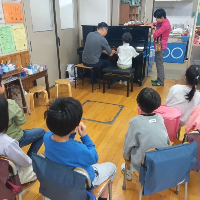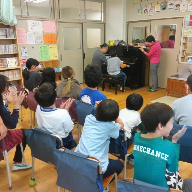 本日、わかば学級では、3〜4校時目に、「音を楽しむ授業」がありました。講師の先生と一緒に、音を楽しみながらピアノ演奏をしています。