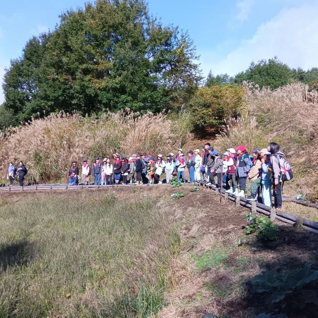 ヒロイド原ハイキングの途中で、みんなで「やまびこ」に挑戦しました!
