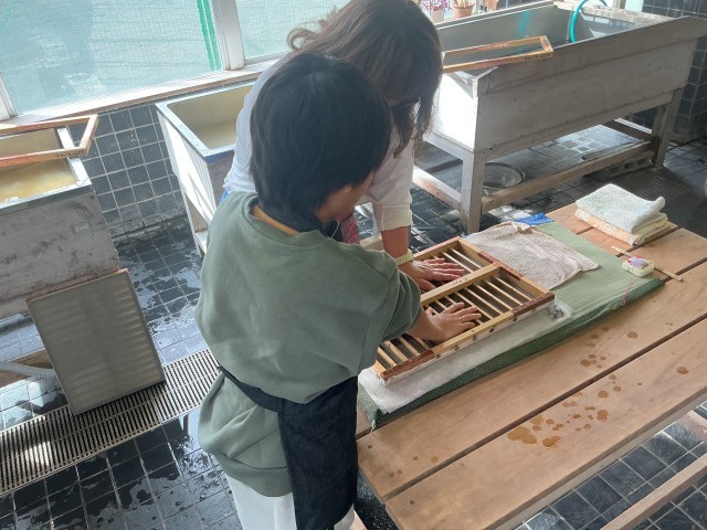 本日、山崎小学校の伝統工芸室に行き、卒業証書紙漉き体験をしました。校章の型をとり、和紙と洋紙を重ね合わせて一人一人オリジナルの卒業証書ができました。三宿小学校は今年で紙漉き体験が10年目だそうです。この伝統がずっと続いて欲しいなぁ〜
