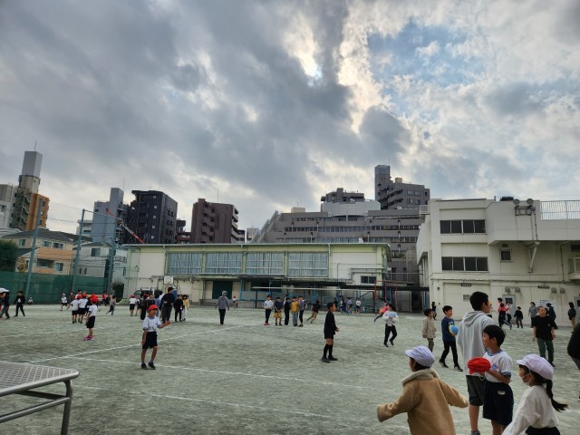 きょうは、昨日に比べて気温が低いように感じますが、多くの子どもたちが元気に外遊びをしています。