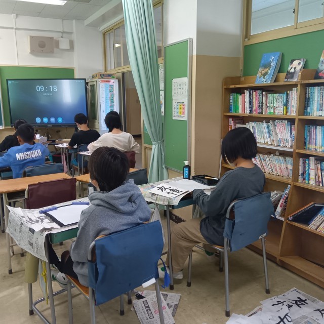 集中した教室から聞こえてくるのは、半紙に動かす筆のかすれる音、書き終えた半紙を取り替える音だけです。