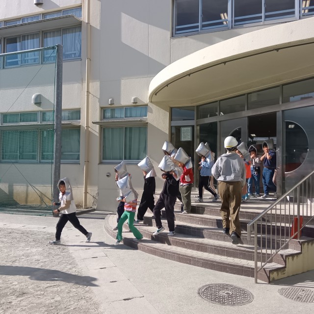 全校児童が速やかに避難することができました。昨晩に大きな地震がおきたニュースを知っていられ児童も多くいました。いつ、起きるか分からない災害です。その時どのような行動をとるのかを子どもたちに考えさせています。