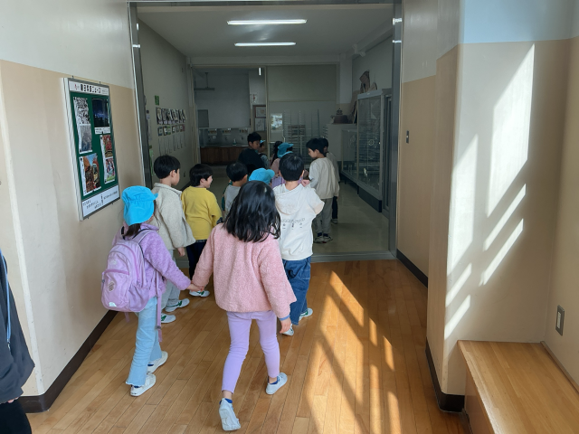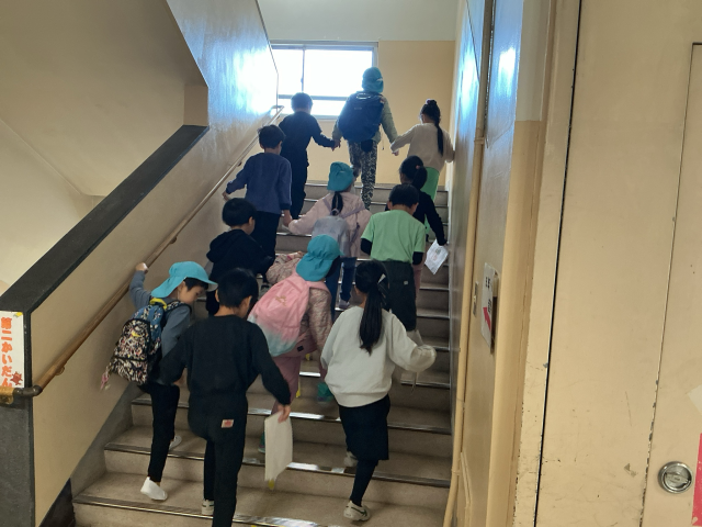 保育園交流会第2回は、太子堂なごみ保育園の皆さんとの交流です。前半は1年生が園児の子たちを連れて学校たんけんです。1年生、優しく立派です。成長を感じます。