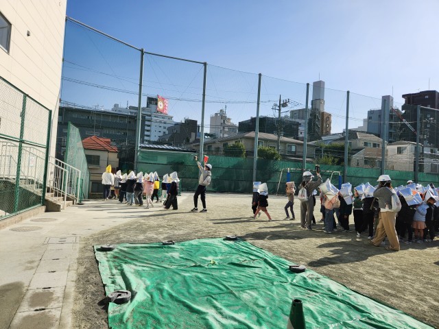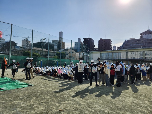 近隣から出火したことを想定して、2次避難場所に全校で移動する訓練を行いました。短時間での訓練ですが、全校児童が、静かに、迅速に行動することができました。