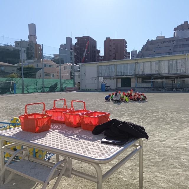 授業途中に避難訓練がありました。速やかに校庭の真ん中に集まり、避難ができました。