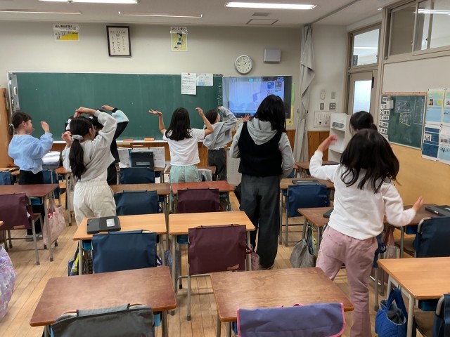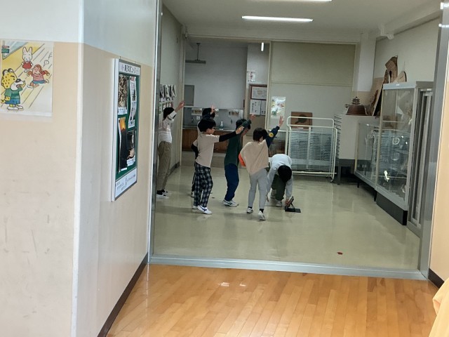 3チームに分かれて、実行委員がダンスの振り付けを教えています。
