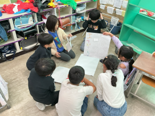 生活科「みんなにつたえよう すてきなまち」のまとめとして、町探検で調べたことや分かったことを1年生に発表しました。発表資料を用いて、三宿の町の魅力を一生懸命発表しました。