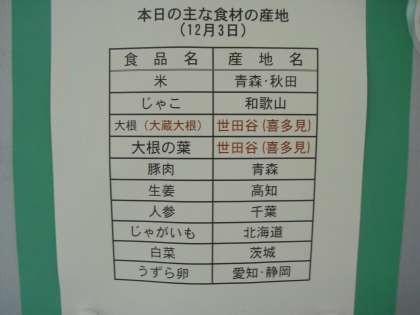 今日の献立は、青菜とじゃこのごはん、牛乳、豚肉と大根のうま煮、黒蜜寒天です。